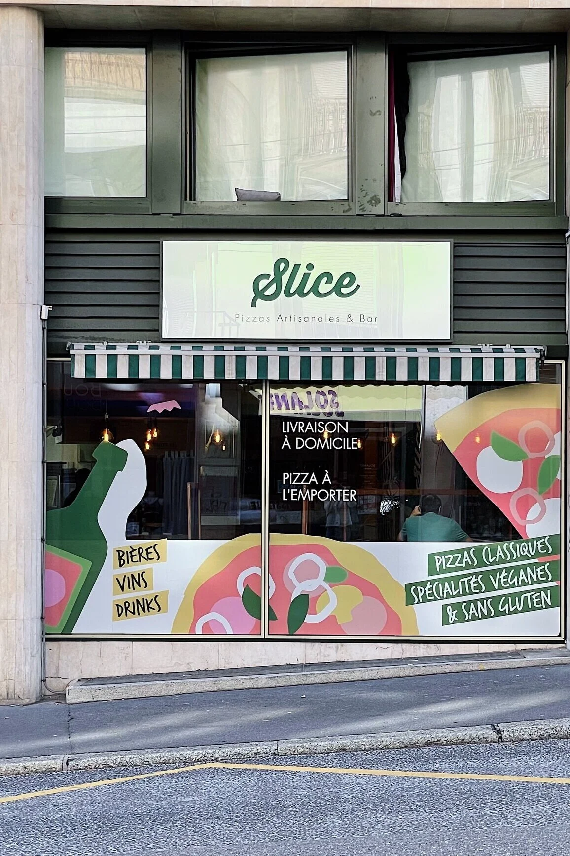 Slice Pizza is a family pizzeria located just a few steps from the Riponne. In order to assert the authentic character and the friendly atmosphere of the place, the interior and branding were redesigned by our studio.